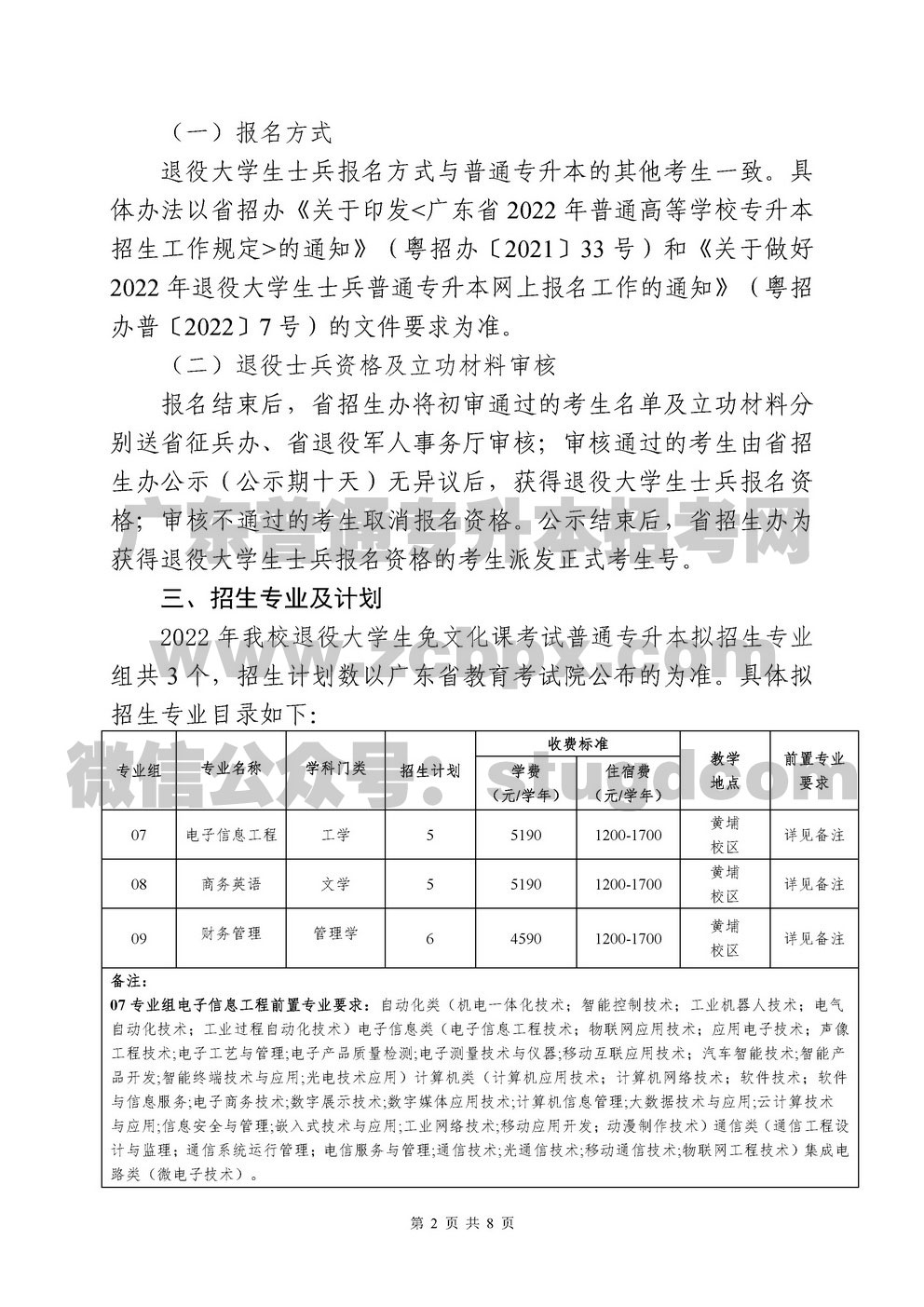 【东莞城市学院】2022年退役大学生士兵招生简章