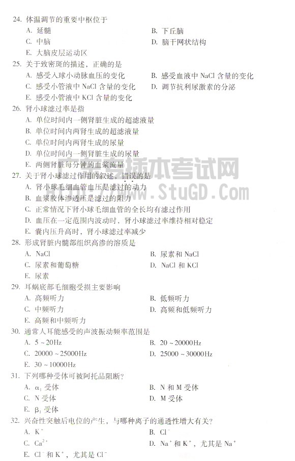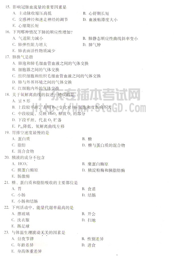 2006年本科插班生公共课生理学试题及标准答案