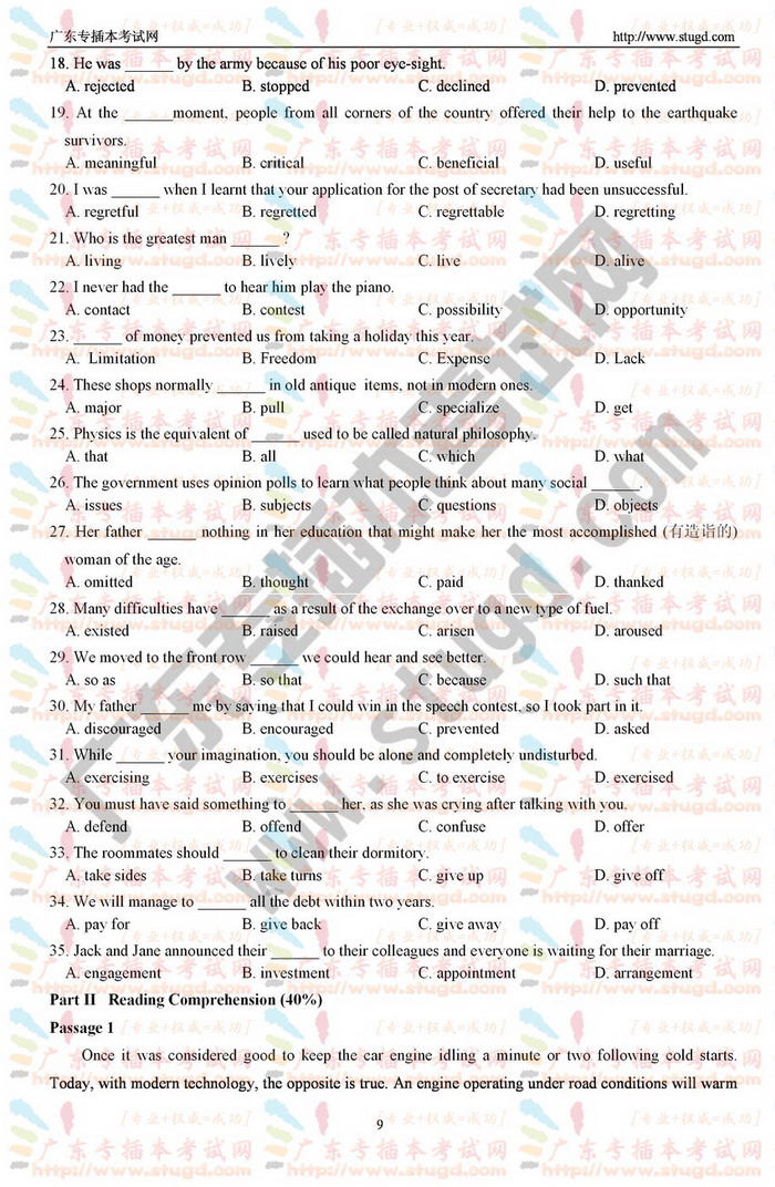 时间: 2009年05月01日 来源:广东专插本考试网 作者: zcbpx 浏览: 次