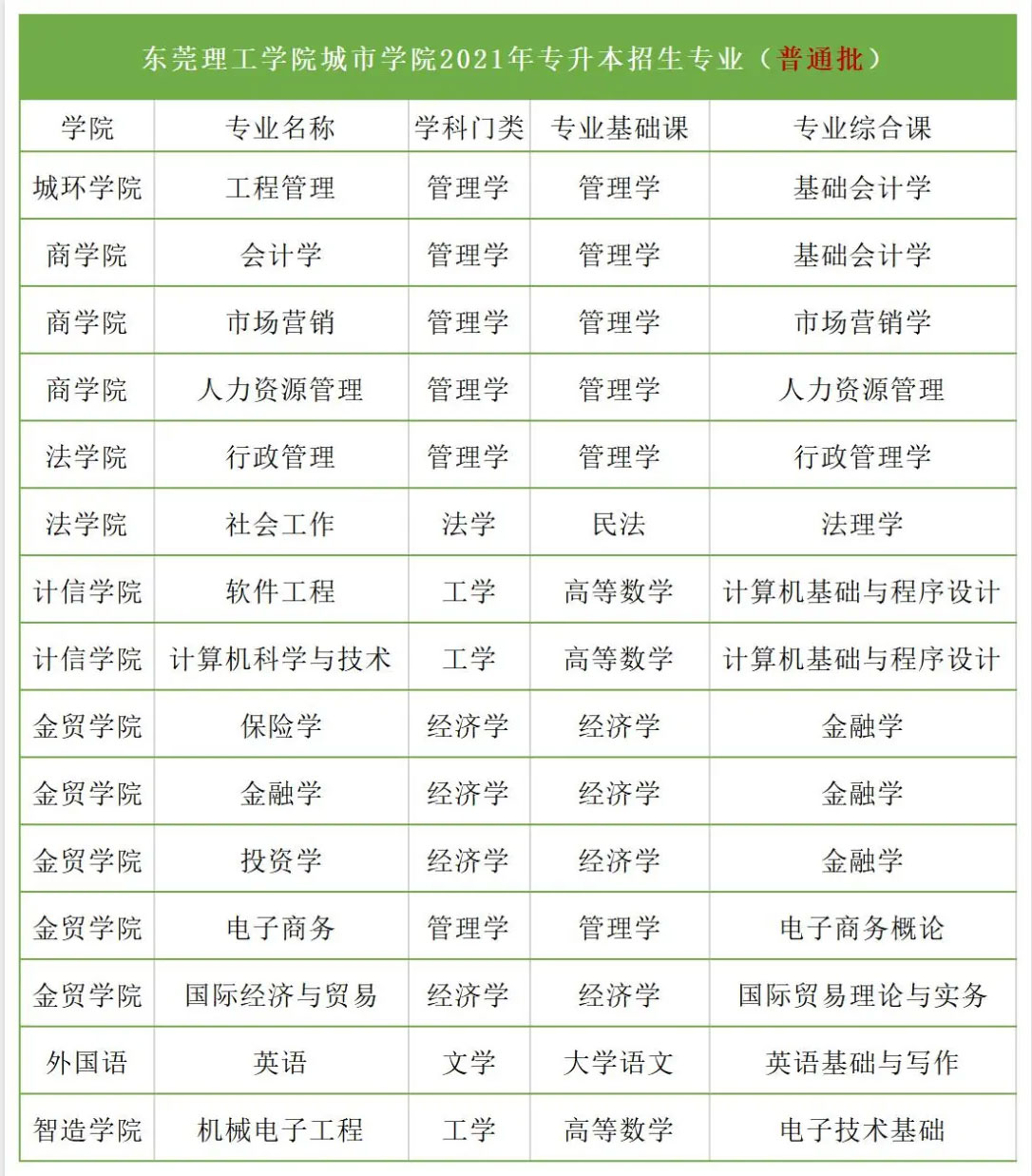 2021年东莞理工学院城市学院普通专升本招生专业目录